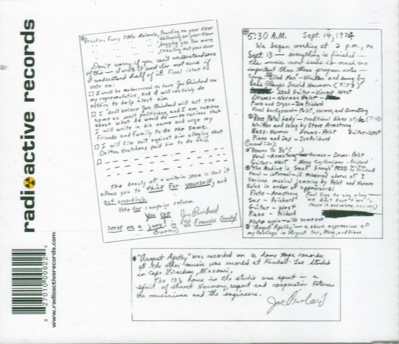 Back cover of Joe Prichard/Gibraltar album "Radioactive"