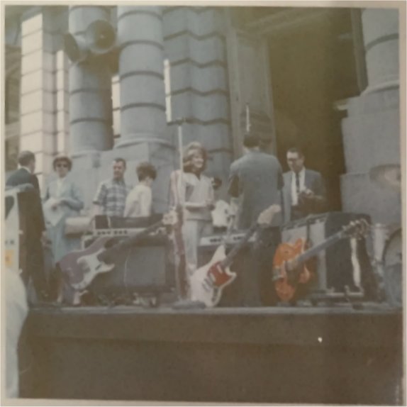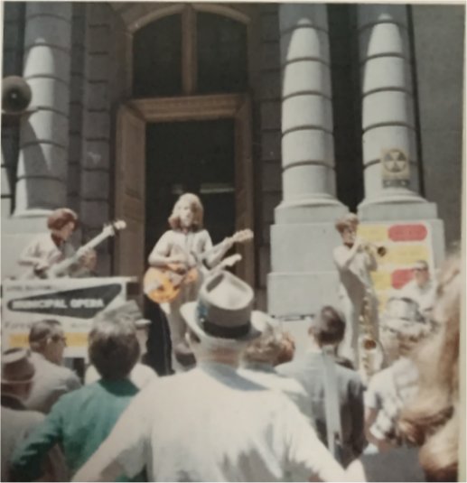 Playing at the Arch dedication on The Old Courthouse steps, May 1966